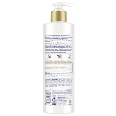 How to Use: Squeeze a generous amount of Dove Breakage Remedy Shampoo for damaged hair into your palm and apply to wet hair, massaging into your scalp until a luxurious lather forms. Enjoy a moment of relaxation as the ingredients get to work, then rinse thoroughly and repeat if needed.