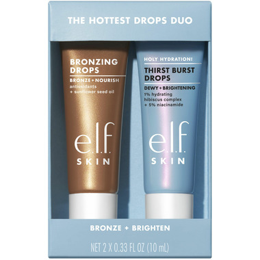It takes two to glow! Together in one kit, meet skincare’s most lit couple: our new Holy Hydration! Thirst Burst Drops and Bronzing Drops. When used together, this duo of brightening and bronzing serums give your skin a dewy, sun-kissed look—no makeup necessary - while also delivering nourishing and hydrating benefits.